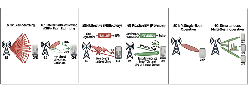 Even in FWA, where the CPE is fixed, this problem does not disappear. The device may stay in one place, but the environment does not. Trees move, vehicles pass, and local blockage can still disturb a narrow FR2 beam. In addition, if many FWA users must be served from the same site, conventional single-beam operation does not fully exploit the spatial capability of FR2 arrays. This suggests that 6G should not simply inherit the 5G FR2 framework as it is.
