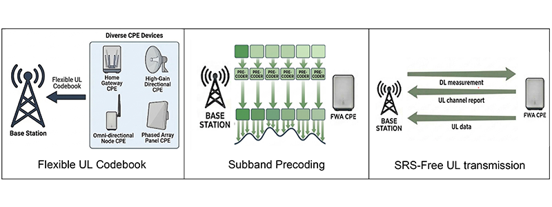 Although FWA traffic is often viewed as downlink-dominant, uplink design still plays an important role in overall spectrum efficiency. Modern FWA services increasingly rely on stronger uplink capability for applications such as video collaboration, cloud backup, and distributed AI processing. More importantly, many of today’s uplink mechanisms in 5G NR were originally designed around the constraints of handheld smartphones. This creates a clear mismatch for FWA CPEs, which have larger form factors, more flexible antenna implementations, and fewer power constraints.