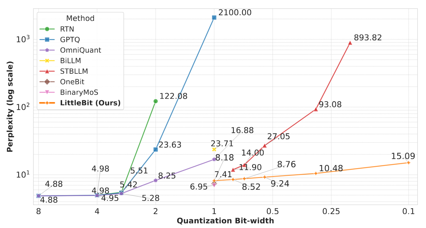 This post explores LittleBit, a novel method introduced in a NeurIPS 2025 paper that shatters this barrier. LittleBit enables extreme LLM compression down to levels like 0.1 bits per weight (BPW). This achieves a nearly 31x memory reduction, capable of shrinking a model like Llama2-13B to under 0.9 GB.