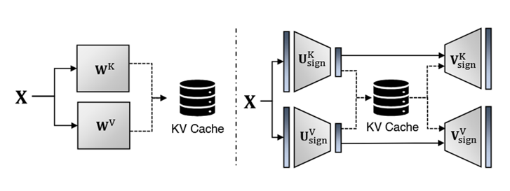Because the key/value projection matrices are factorized, the model only needs to cache the intermediate latent state (of dimension $r$) instead of the full model dimension ($d_{model}$).