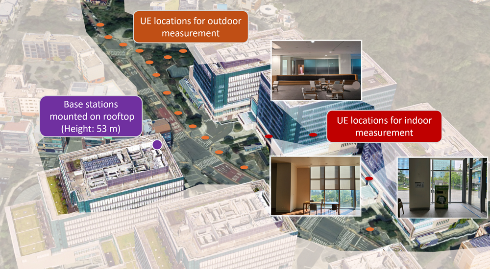 To validate our 6G technology in realistic conditions, we conducted extensive field testing at Samsung Research's Seoul R&D campus site. The location provides a representative urban environment with a mix of line-of-sight (LOS) and non-line-of-sight (NLOS) propagation scenarios.