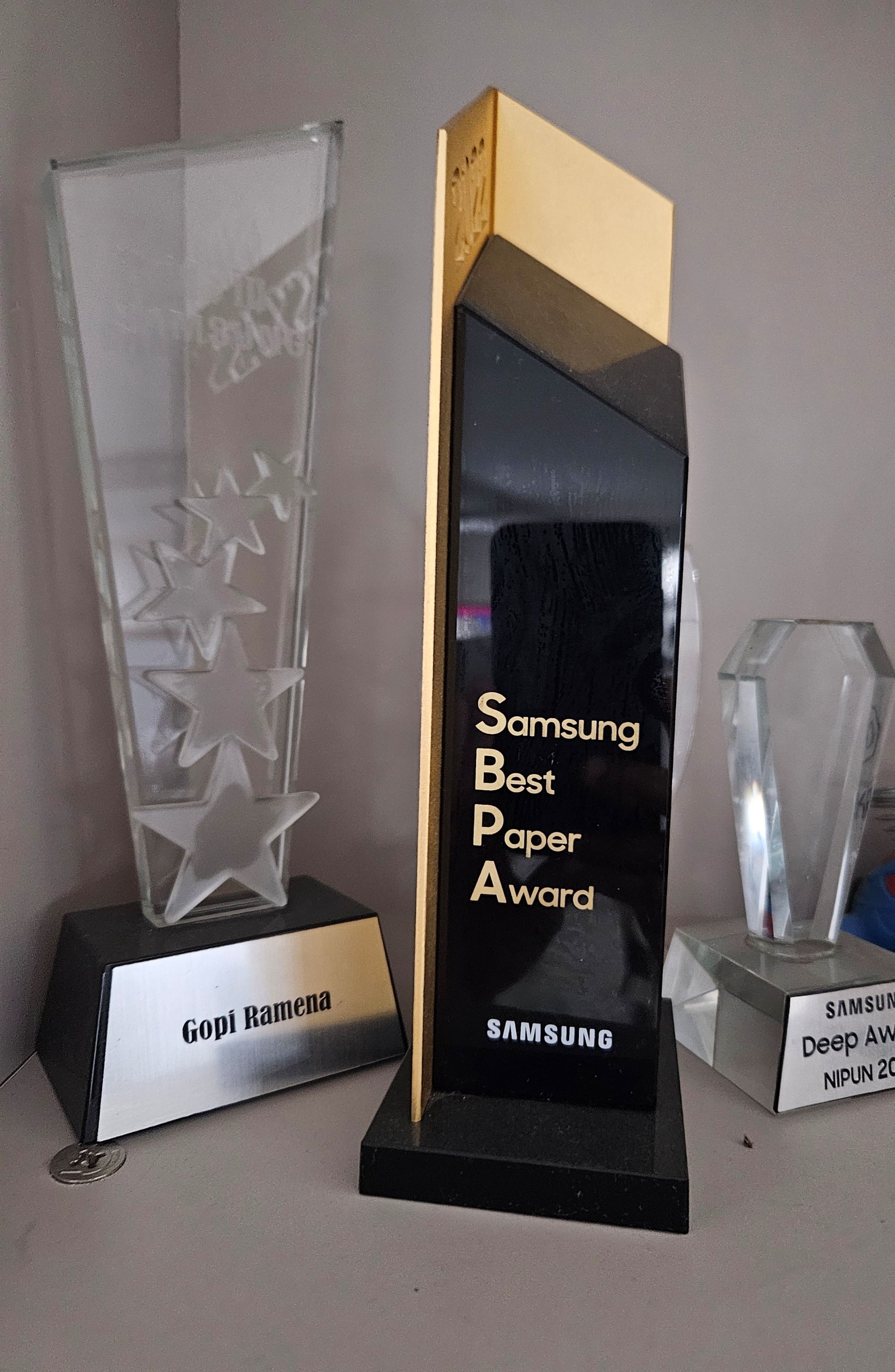 One look at Gopi’s shelves of awards shows you the spectrum of his honours; the prestigious SBPA Award, MX CTO Award, multiple Excellence and Annual Awards from Samsung, and a growing list of patents and research papers, including a Best Paper award. Each one, a reminder of his deep commitment to excellence and a display of his varied interests.